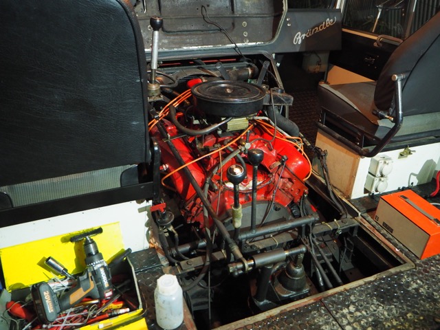 Schön ist das Werkeln am Motor in geschützter Hütte....