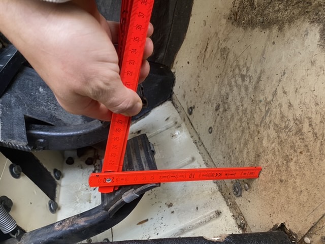 Zwei Umdrehungen an der kleinen Schraube (21) waren wir wieder bei 140mm Abstand vom Bodenblech.