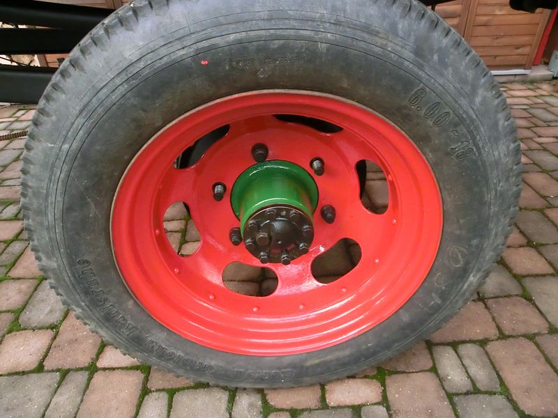 Die Achse stammt von einem OPEL Blitz (Zwillingsräder) Es wird nur ein Rad und das noch falsch herum montiert.